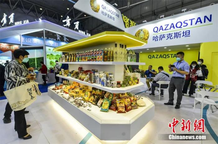 在新疆乌鲁木齐举办的第七届中国-亚欧博览会上,哈萨克斯坦展区商品丰富吸引参观者围观。刘新 摄
