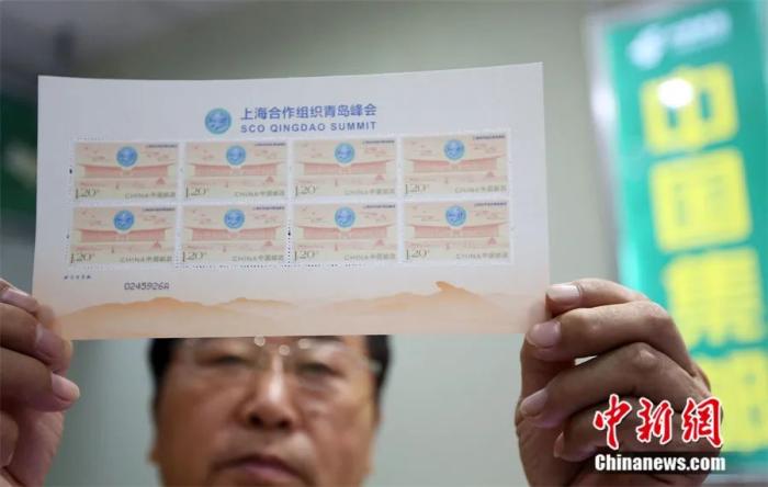 北京集邮爱好者展示《上海合作组织青岛峰会》纪念邮票。上海合作组织是中国、哈萨克斯坦以及各成员国之间开展多双边外交的重要平台。卞正锋 摄