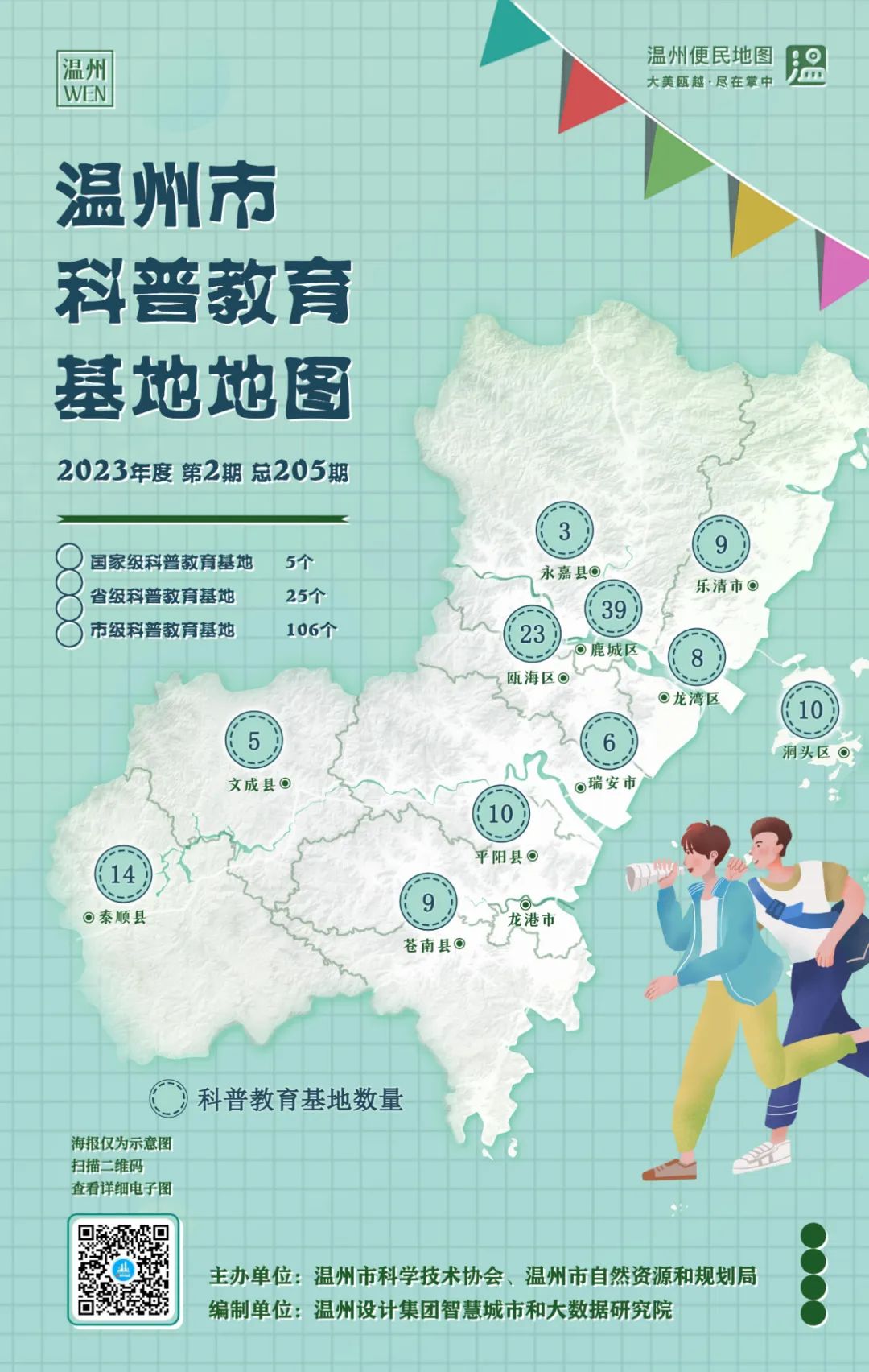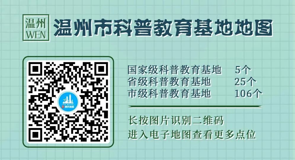 本次在温州市科学技术协会、温州市自然资源和规划局的联合指导下,温州设计集团智慧城市和大数据研究院编制了《温州市科普教育基地地图》,地图收录了全市136家科普教育基地。接下来,跟着地图君先去看看几个有趣好玩的科普教育基地吧!