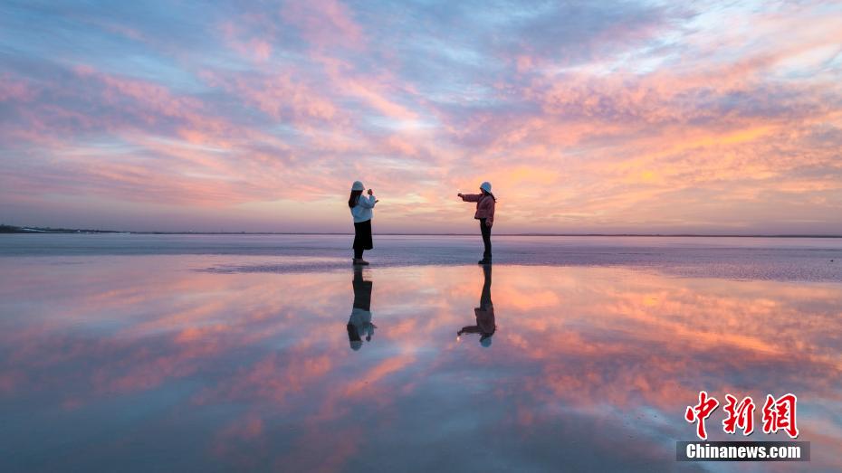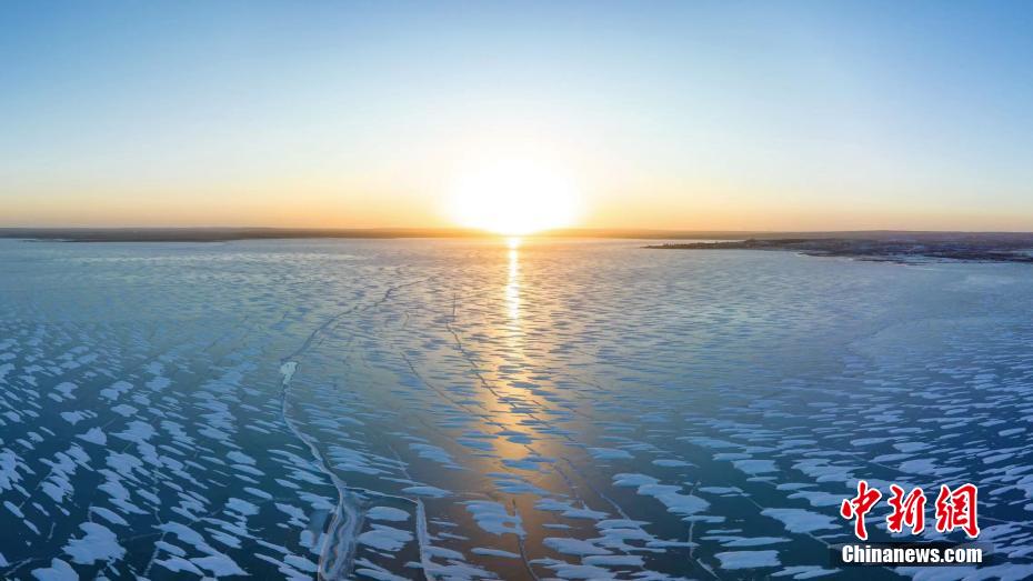 湖面如镜 陕西红碱淖冬景宛若冰雪童话