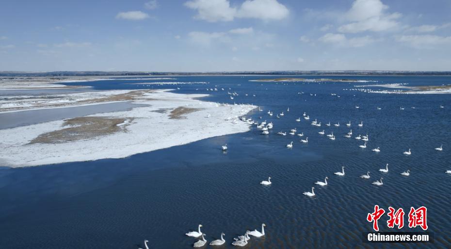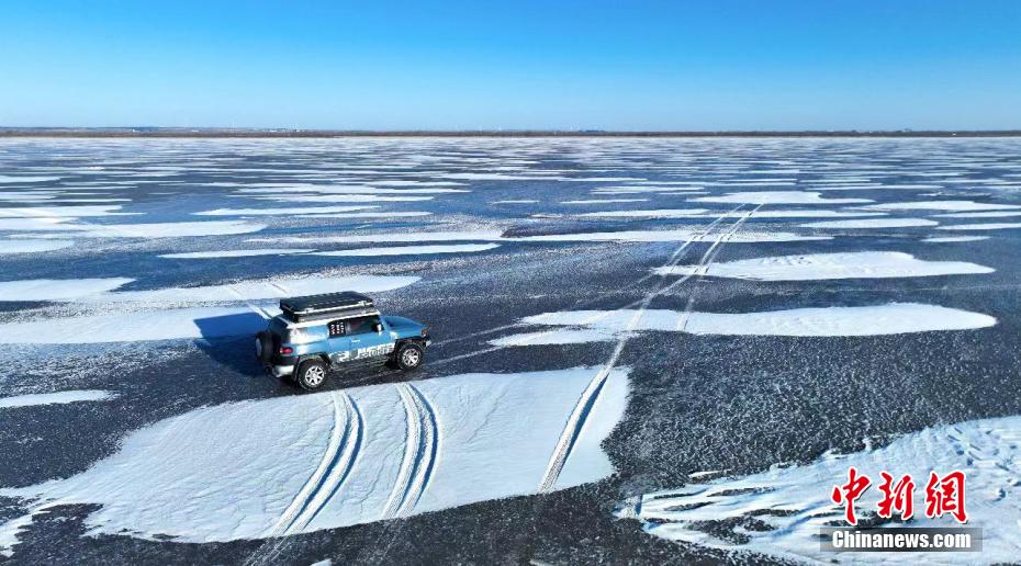 近日,陕西红碱淖国家级自然保护区内因气温降低,部分湖面冰封,落雪点缀着如同镜面的湖泊,宛若冰雪童话。