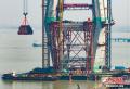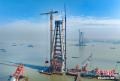 2月28日,江苏常州,全球最大塔机投入世界最大跨度公铁两用斜拉桥——常泰长江大桥建设。图为巨型塔机投入常泰大桥建设中。