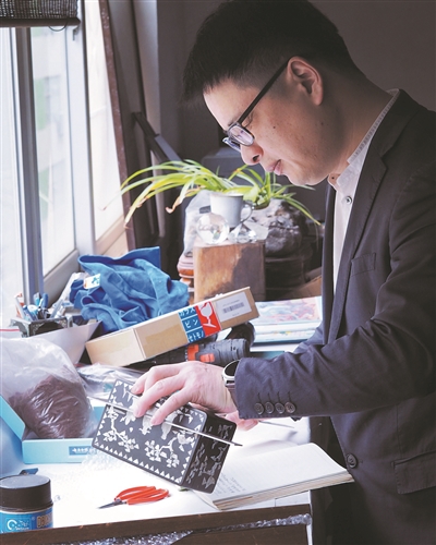 为了讲清楚,道明白贝雕的前世今生,他痴迷于买有关贝雕各个时期镶嵌技艺的书籍,上网拍各种贝雕文物、利用光谱检测贝壳材质等。“买书、上网搜索相关资料是他的日常,贝雕是他‘全天候’的伙伴,有时隔着屏都能感受到他的开心。”陈灿渊的妻子笑道。