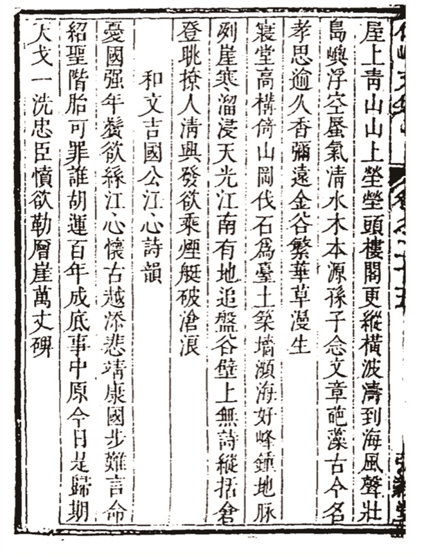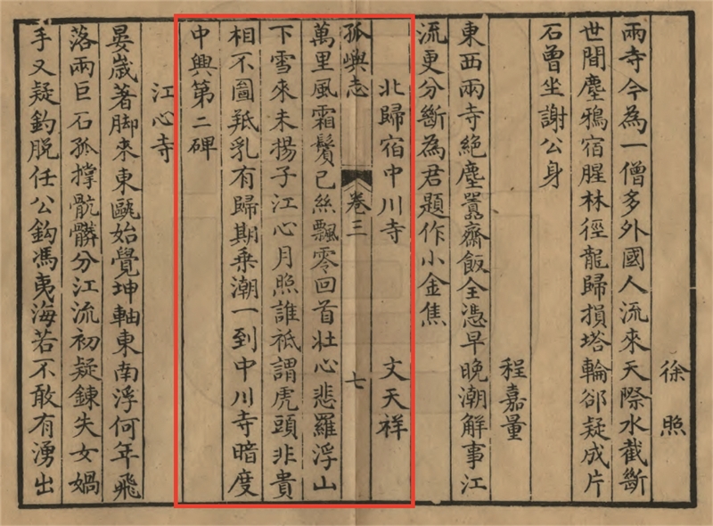 弘治十一年(1498),谢铎和汪循同游江心屿,参观了文信国公祠,二人照文天祥《北归宿中川寺》的原韵各写了一首诗。