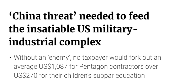 【世界说】欲壑难填!港媒:美国炒作“中国威胁论”是为了养活“他们”