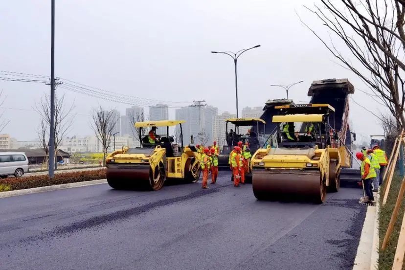 据介绍,此次路面工程行车道、辅助车道共摊铺上面层细粒式AC-13C沥青混凝土38.5万平方米,设计压实厚度分别为4厘米和5厘米。同时,该项目建设积极引进新设备,在沥青摊铺中采用半幅一次性摊铺的重大设备,实现一次性完成半幅路面沥青施工,使中间无纵向施工缝,既保证了路面整体性,又加快了施工进度。