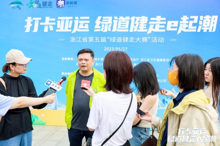 浙江省建设厅城建处处长沙洋接受采访时表示:“再过100多天,第19届亚运会将在杭州举行。今年的绿道健走大赛在钱塘江边的之江绿道启动,目之所及就是亚运主赛场奥体中心,就是希望通过绿道健走营造全民健身的迎亚运氛围,让更多的老百姓参与到绿道健身中,体验到‘中国特色,浙江风采’的亚运内涵。”