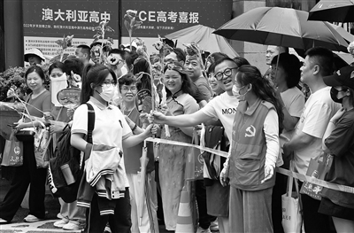 7日上午,21中考点,第一场考试结束,一位家长给走出考场的考生递上向日葵,祝愿孩子一举夺魁。