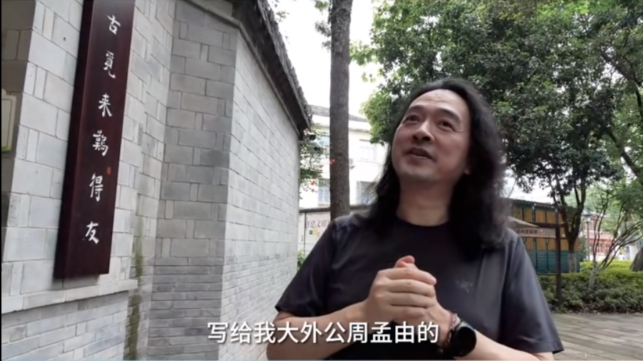 6月17日,著名作曲家、音乐制作人捞仔来到温州市区中山公园,他站在从周宅花园移来的老门台前,指着“千古觅来难得友;三人行处易寻师”对联说:“这是弘一法师当年写给我大外公周孟由的。”