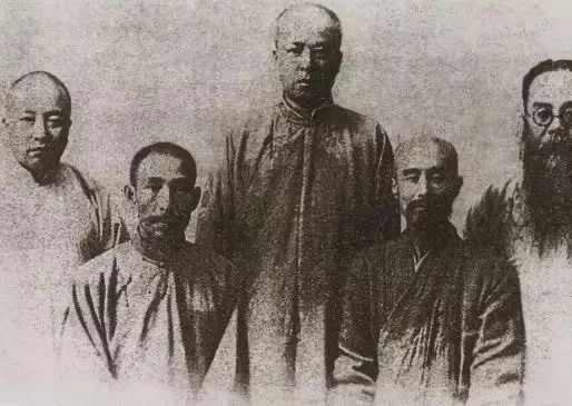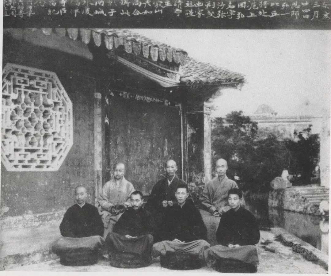 后排从左至右:因弘和尚、寂山长老、弘一法师