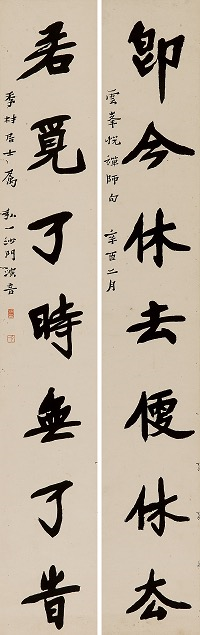 一九二一年弘一楷书《即今·若觅》七言联(温州博物馆藏)