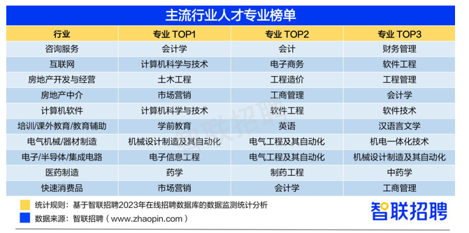 主流行业人才专业榜