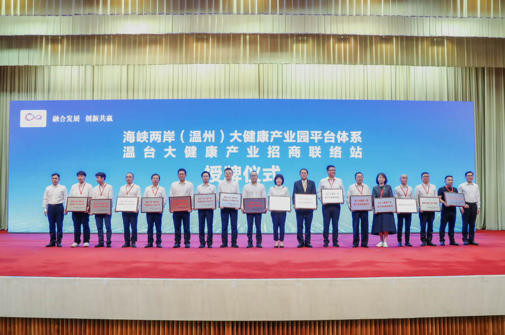 开幕式上,海峡两岸(温州)大健康产业园正式揭牌,大健康产业园“一核多点”平台体系和温台大健康产业招商联络机构集中授牌。未来,产业园将招引一批台湾百强企业,靶向对接一批高端产业人才,联合共建一批创新合作园,形成在全省乃至全国有竞争力、影响力的大健康特色产业集群。