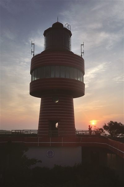 7月9日,岛上日出时间,在清晨4时50分许。这意味着,不到5点,杜忠良与3位志愿者都已经起床了。志愿者趁天亮前,将灯塔灯器外围的玻璃窗拉上帘幕。为附近海域照明了整夜的灯塔之光,终于迎来了休息时间。