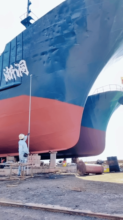 温州船厂工人撑6米长杆写船号登上热搜 网友怒赞“有两把刷子”