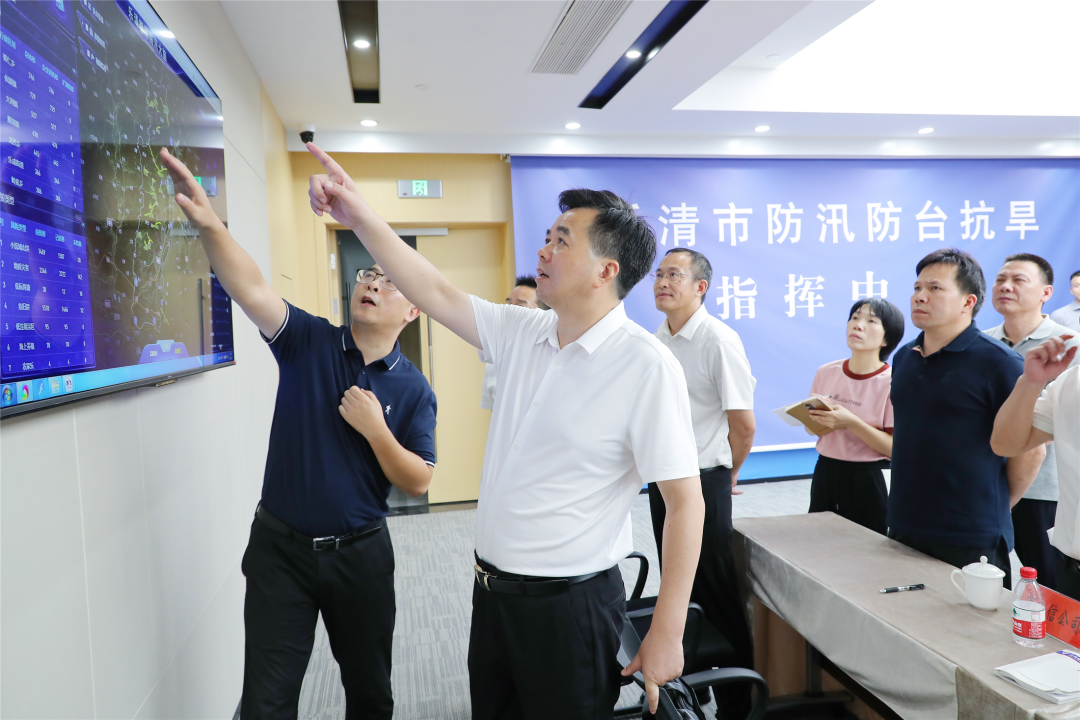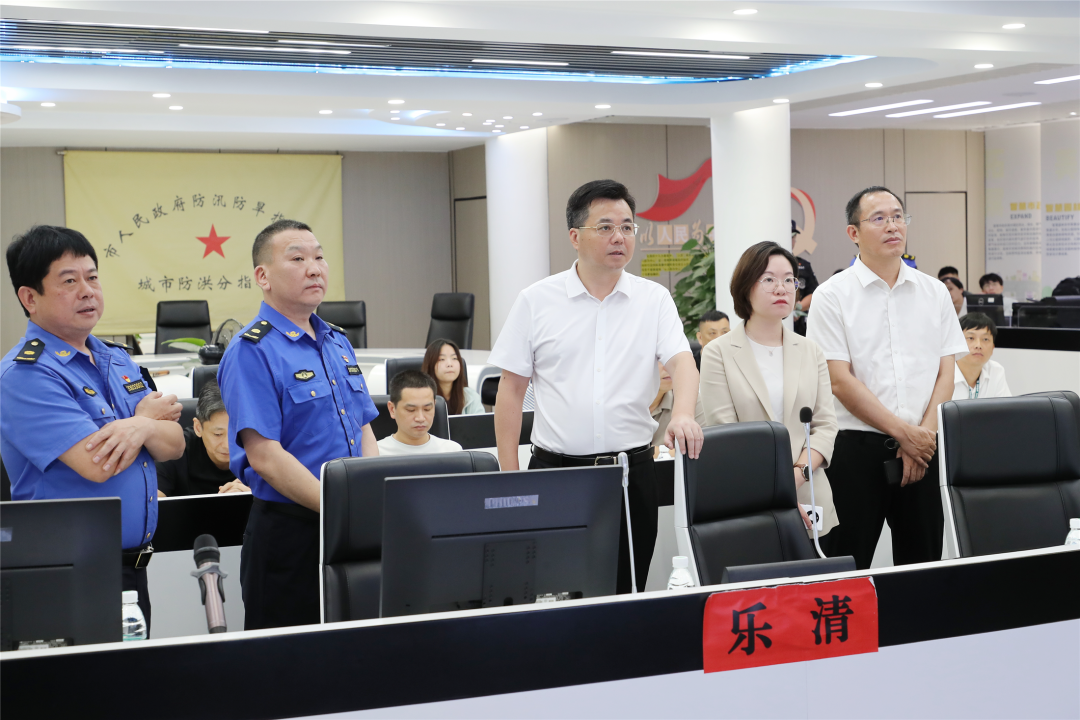 徐建兵一行最后还来到市防汛防台抗旱指挥中心,察看乐清智慧防汛大脑等数字化建设情况,听取相关部门关于台风“杜苏芮”发展趋势、最新降雨情况及全市防御工作准备情况等汇报,并就相关重点任务再部署、再推进。徐建兵强调,各乡镇(街道)、各部门单位要坚持人民至上、生命至上,牢固树立“一个目标、三个不怕、四个宁可”理念,全力做好值班值守工作,全面落实各项防御措施,做到应转尽转、应转早转、应转快转,齐心协力打赢防汛防台硬仗。