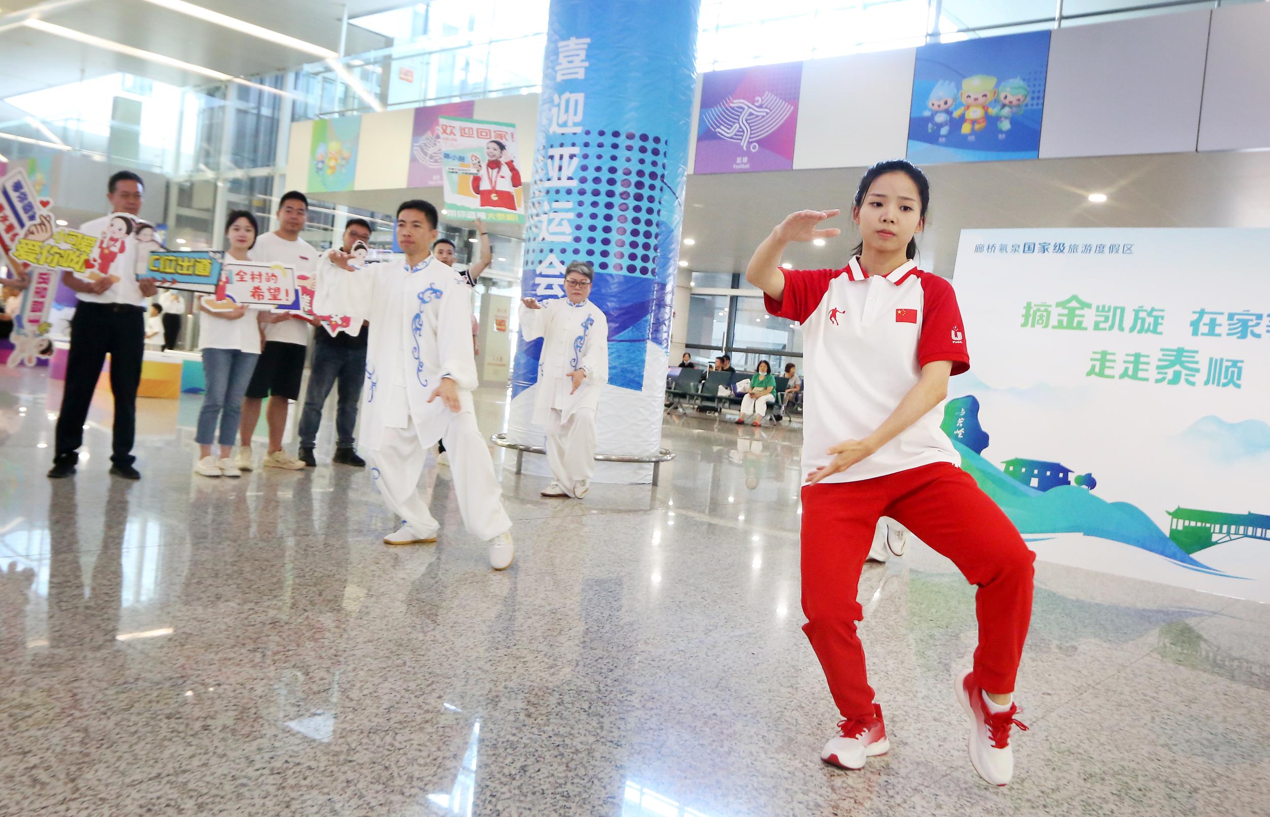 为了感谢大家的热情,陈小丽还与特地赶来接机的泰顺县武术协会成员们一起,即兴表演了一段太极。