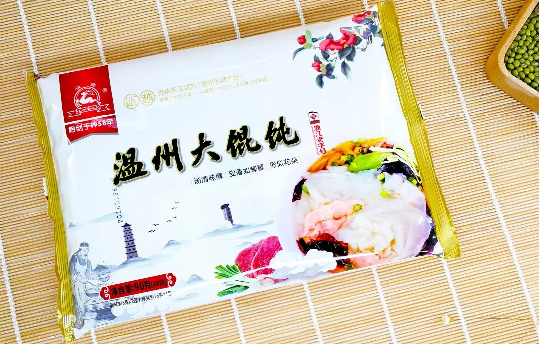 大馄饨也是温州小吃的金字招牌之一,薄薄的馄饨皮包着满满猪后腿肉精制而成的肉馅,没有办法来温州现场吃上一碗地道的长人馄饨,那就来一包“快鹿”牌速食温州大馄饨吧,一样好吃哦!