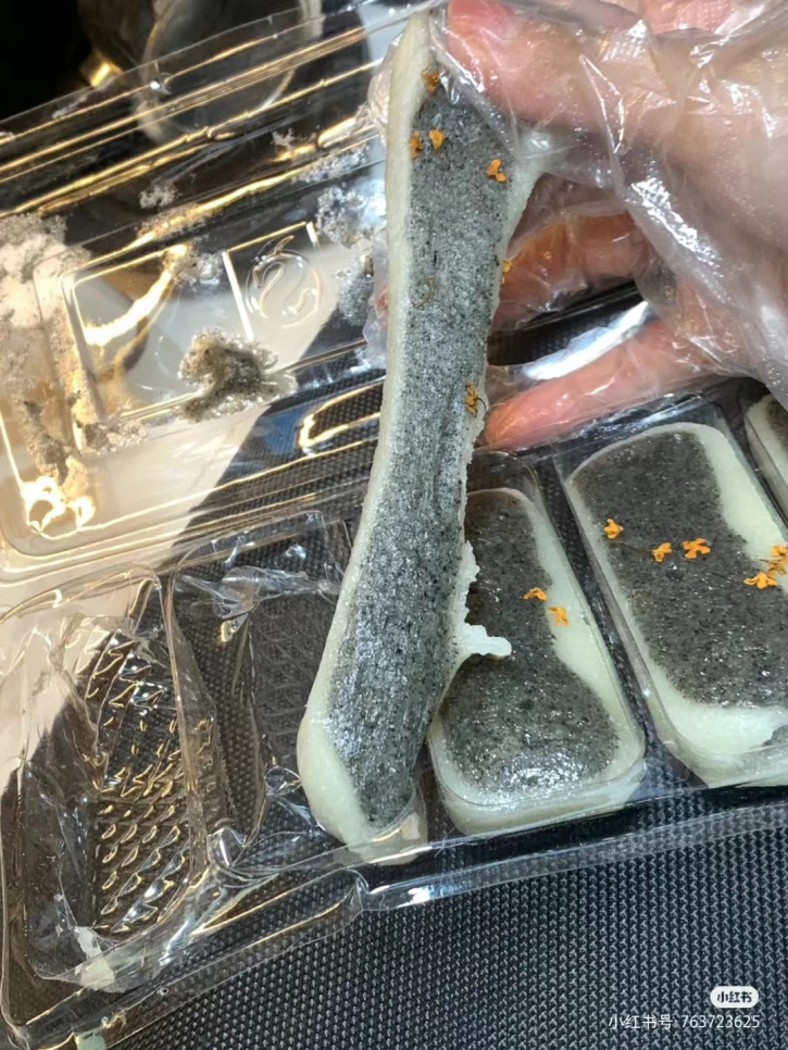 看图片就能流口水的程度!带着芝麻香气的软糕软糯拉丝,表面还撒上干桂花,超级香!芝麻软糕带着淡淡的甜,很符合现下的健康饮食理念,吃再多也不怕腻味。喝茶的时候来一口真的非常可!