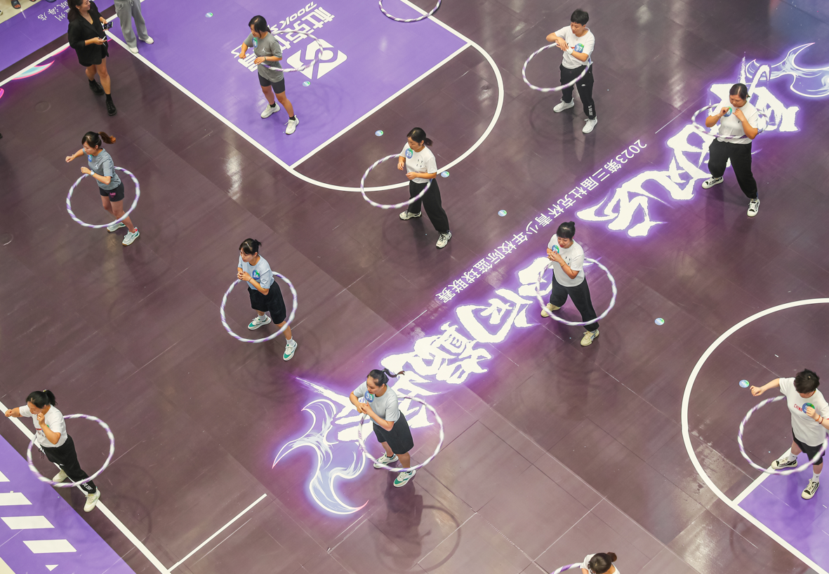 随着裁判一声号令,动感轻松的音乐响起,参赛队员飞快地拿起呼啦圈,身手敏捷,灵活扭动的腰肢,呼啦圈轻盈地转着,在各自的腰间飞舞着,充分展现了新时代巾帼风采,形成了一道道靓丽的风景线。