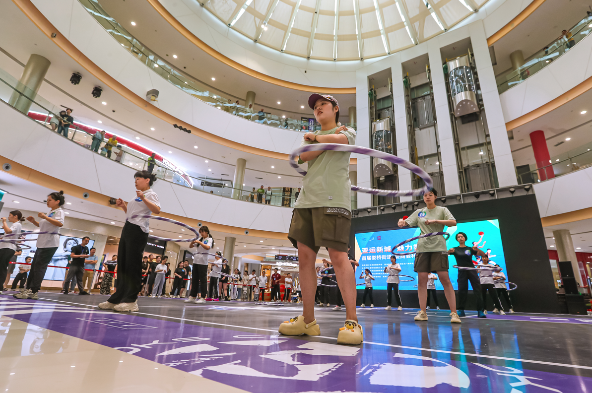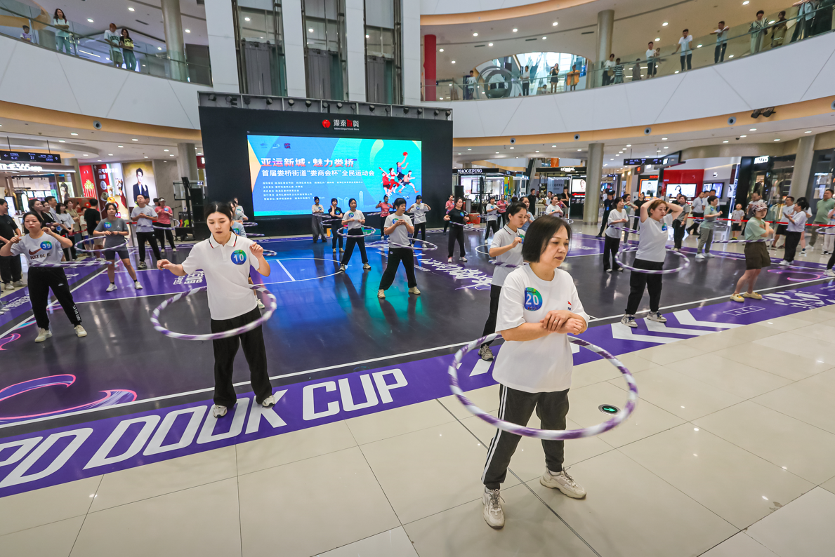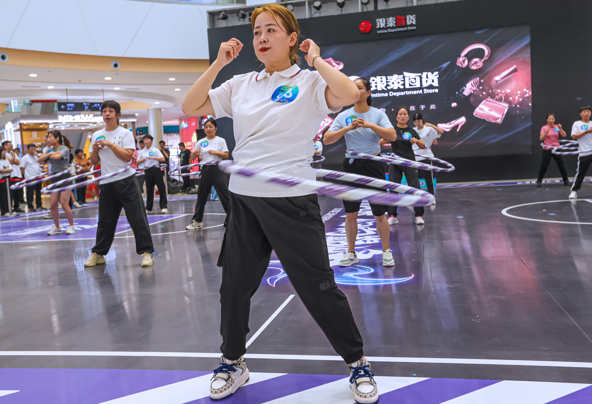温州网讯 8月19日上午,首届娄桥街道全民运动会呼啦圈比赛在大西洋银泰百货瓯海店1楼中庭举行。