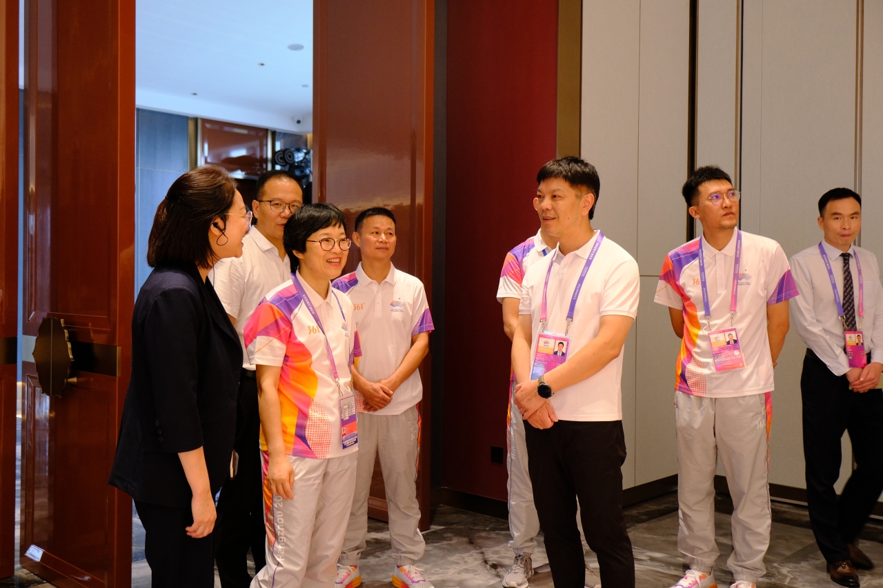 温州运动员分村今天已和杭州亚运村同时开村,正式投入赛时运行,迎接各代表团入住。下午,曾瑞华依次检查安检通道、综合服务台、运动员餐厅、公共休闲区、消防通道等各区域,向工作人员、志愿者的辛勤付出表示感谢,详细了解分村运行情况。曾瑞华表示,要按照“以运动员为中心,以服务赛事为核心”的办村宗旨,全心全意、全力以赴为来宾提供舒心的居住服务、安心的备赛保障。要保持严谨细致、周密周到,在确保安全的基础上扎实做好运营管理,结合实际情况把各个环节工作再完善、再抓实、再落细,以热情优质的服务努力打造舒适、安全、智能的运动员之家。