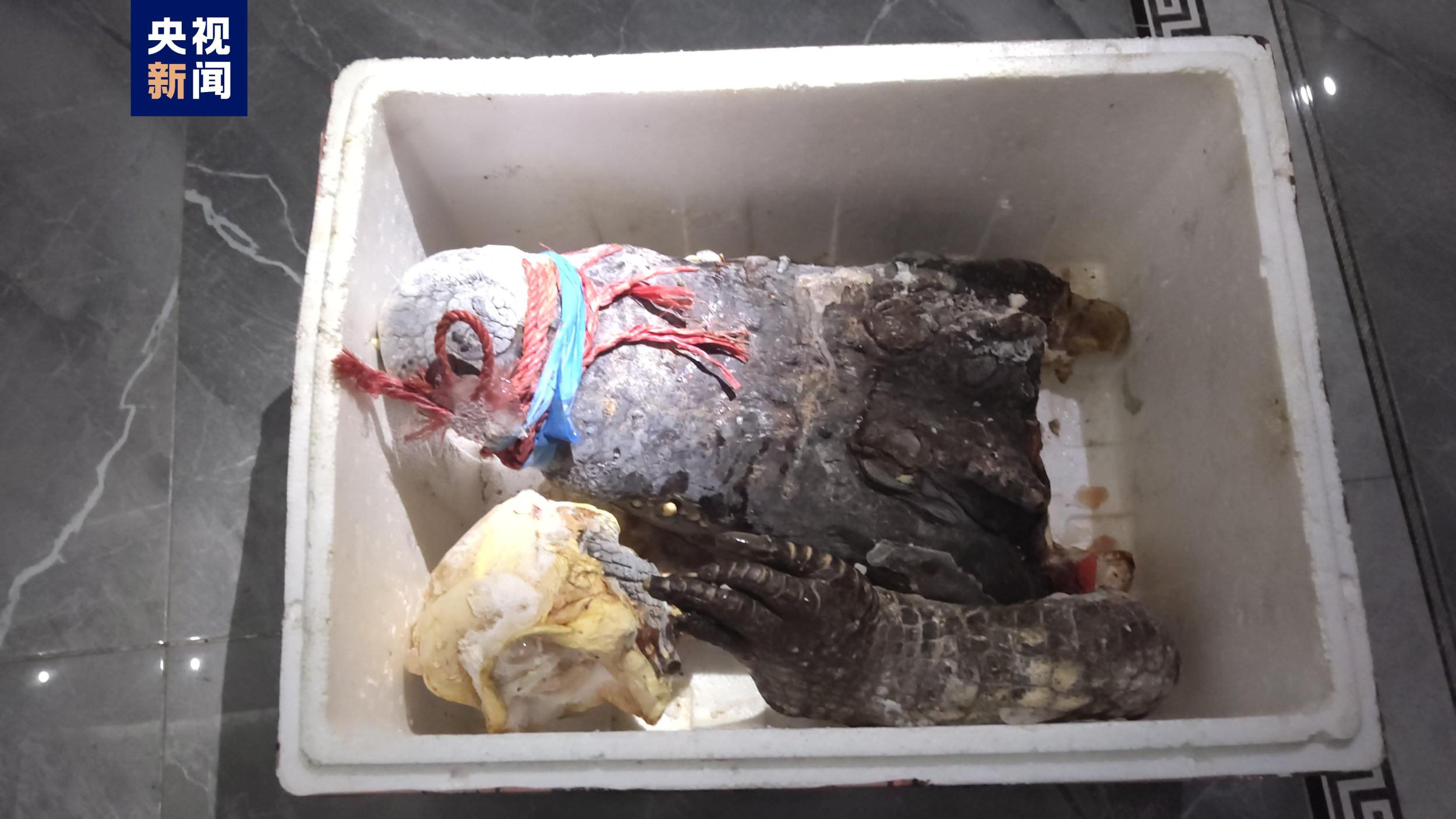 另外1条鳄鱼,经公安部门调查得知,于2021年12月27日,被该养殖场员工发现精神状态不佳(临近死亡)后,被该养殖场员工宰杀,并将部分鳄鱼肉出售,鳄鱼头被冰冻保存。公安部门已提取到宰杀鳄鱼当晚的相关微信对话记录,及现场宰杀鳄鱼的视频录像等证据进行保存,并到该员工家中取走鳄鱼头和部分鳄鱼脚等部位的冻体进行封存取证。