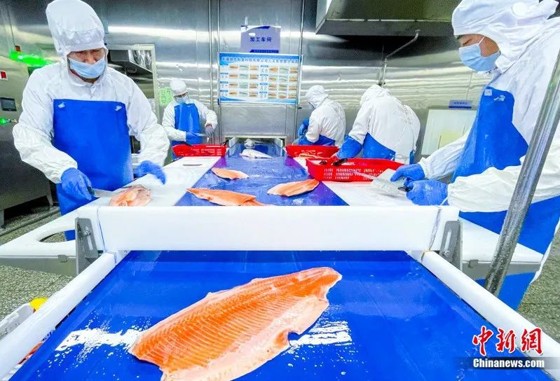 三文鱼加工流水线。新疆天蕴有机农业有限公司供图