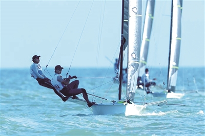 与刘添获男子49er级快速艇赛金牌