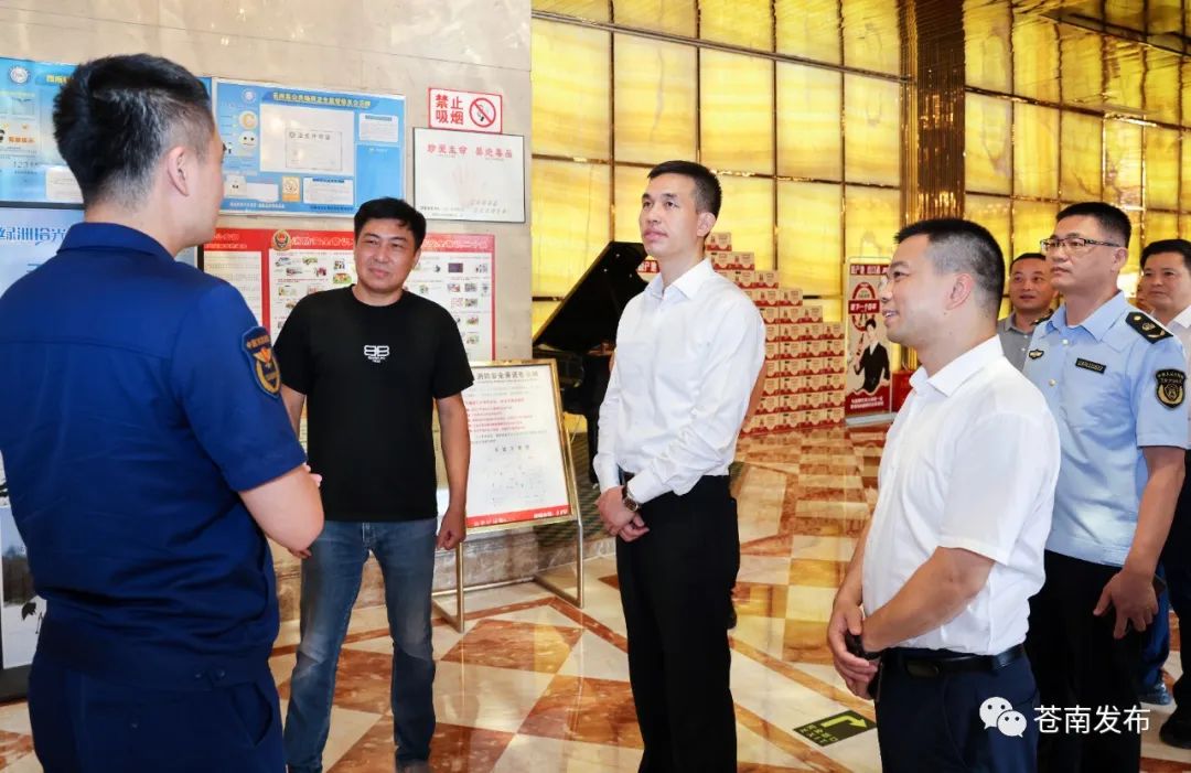 张本锋一行来到苍南唐拉雅秀大酒店项目工地,查看建筑工地安全情况。唐拉雅秀大酒店位于县城新区规划中央核心区,该项目按照五星级标准设计,高约138米,建成后将成为我县的新地标性建筑。张本锋现场查看并了解该项目推进及安全生产措施落实情况。他强调,项目建设是推动我县经济高质量发展的重要引擎,要时刻绷紧“安全”这根弦,抓实抓细日常监督管理,及时消除建设过程中各环节的安全隐患,在确保安全的前提下,坚持高标准、高质量、高效率推进,确保项目早日建成、早日达效。