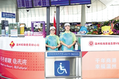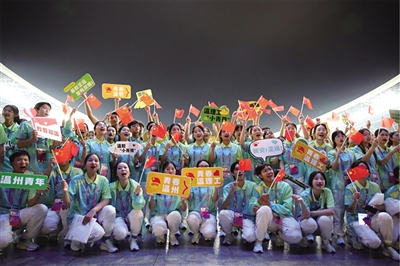 当然,更让人印象深刻的,是小青荷在赛场周边无处不在的身影。我们看到了温州体育中心那位为了不让观众走进“死胡同”,一场抬手百余次为观众指路的小青荷;看到了温州奥体中心主动为残疾人推轮椅,并把其家人位置调整至残疾人区域附近的小青荷;看到了在暴雨之夜不顾自身浑身湿透,紧急转移近2400名观众至应急区的小青荷。我们记不得他们的名字,但会记着那顶白色帽子下,一张张青春的笑脸。