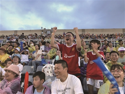 与疯狂的足球相对应,我们还看到了一群可爱的球迷。他们中,有89岁专程从外地赶来的杨老伯,有在老师带领下来现场“偷偷学艺”的足球小将,有“打飞的”从越南赶来的球员家人,有带着导盲犬来看球的盲人球迷,还有看完球赛就带员工去比赛的温州老板。