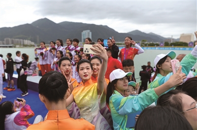 中秋之夜,温州亚运分村大厅内,四名平日在各自岗位默默付出的小青荷,更是脱下了志愿者服装,穿上汉服,端起古琴,为外国运动员献上了具有浓浓中国风的表演。走下台与运动员合影时,新加坡女足运动员陈俪彬才惊奇地发现:“你不是给我激活证件的志愿者吗!”