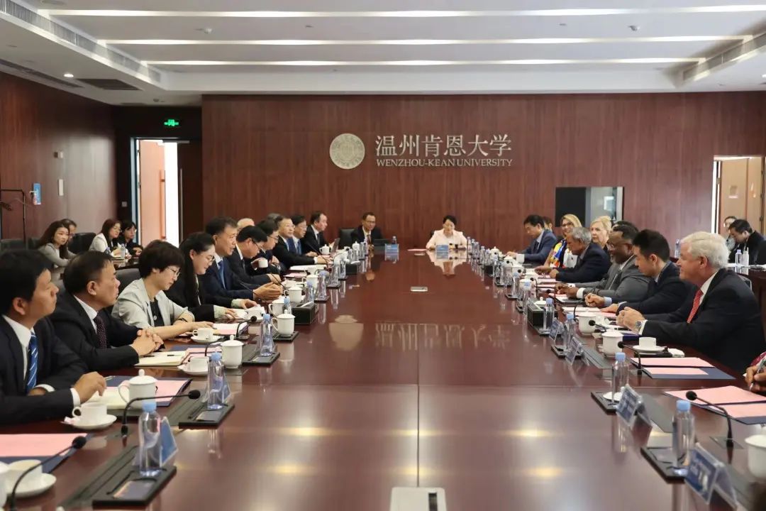 张振丰对拉蒙·雷波列特再次带团来访温州表示欢迎,并感谢美国肯恩大学长期以来对温州肯恩大学建设发展的关心支持。他说,作为中美教育合作交流的重要成果,温州肯恩大学创办以来不断探索、一路前行,从孕育新生到发展壮大,与城市经济社会发展同频共振、共生共荣,已成为温州高等教育的重要板块、展示城市国际化水平的一张金名片。当前,温州肯恩大学正处于快速发展期、重要机遇期,希望双方朝着“高水平、国际化、示范性”的办学方向,携手推进高水平学科建设、高水平人才培养、高水平双向交流,加快打造中美合作办学典范。温州市委市政府将一如既往支持温州肯恩大学建设发展,努力为其创造一流的国际化办学条件。