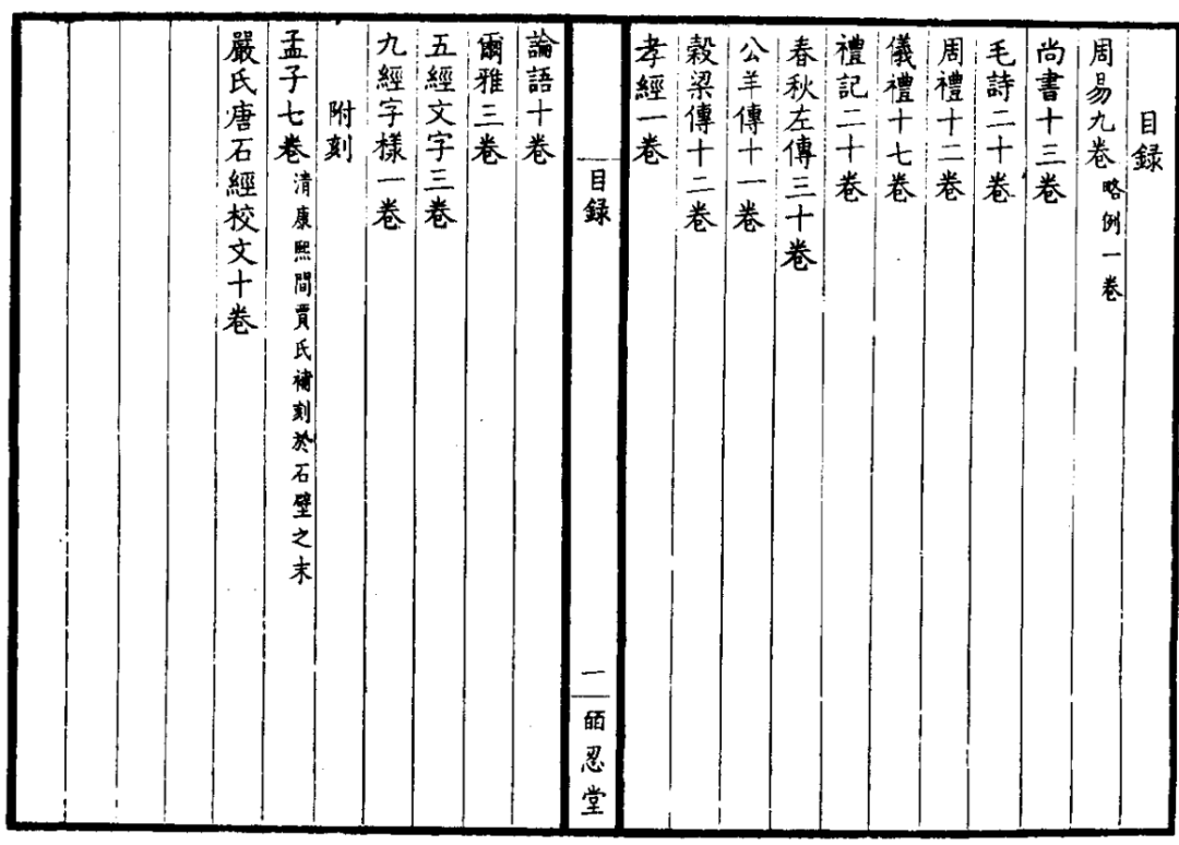 《开成石经》目录。见《景刊唐朝开成石经 附贾刻孟子严氏校文》,中华书局1997。