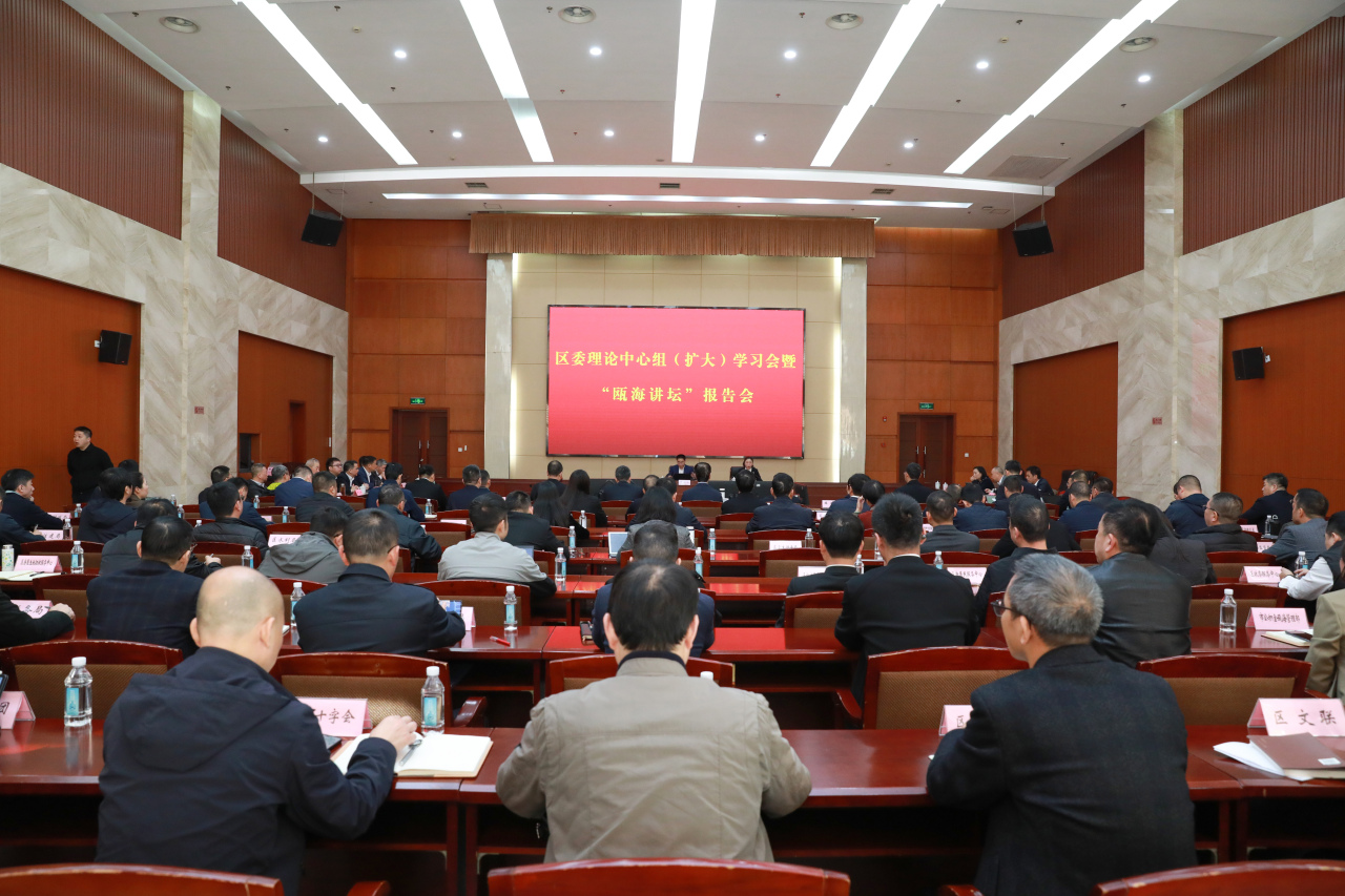 温州网瓯海支站讯 11月21日,瓯海区委理论学习中心组(扩大)学习会暨“瓯海讲坛”报告会举行,正式开启区委主题教育第三期读书班。学习会邀请浙江日报报业集团原副总编辑、浙江省记协副主席、省政府咨询委员周咏南作《习近平浙江足迹》专题辅导。