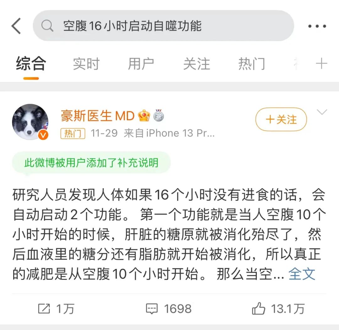 最近,一条消息在网络上爆火。作者称如果人体16个小时没有进食,就会启动两个功能:一个是肝糖原被消耗殆尽,身体开始消化脂肪;另一个功能叫做“自噬”,就是自己吃自己。