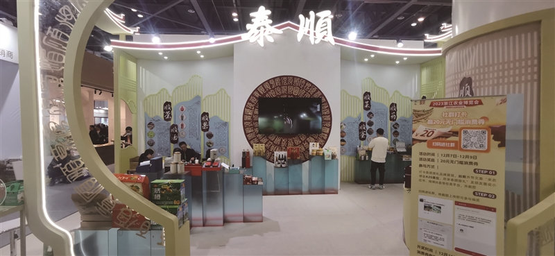 省农博会上,泰顺展台地方特色别具一格,将泰顺飞檐等古民居建筑特色结合泰顺山水以及“顺礼”品牌,打造出精致典雅的中式风格。展台以金黄色、木色和红色为主色调,重点呈现泰顺的农特、文旅等特色产业。整体布置古色古香,让观者仿佛身临其境领略到泰顺的好山好水。
