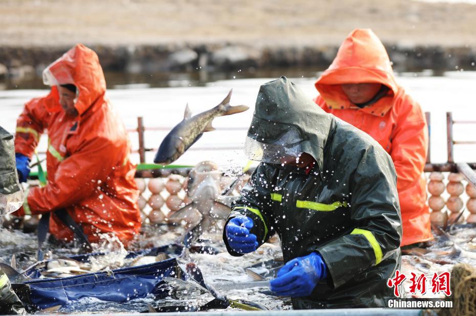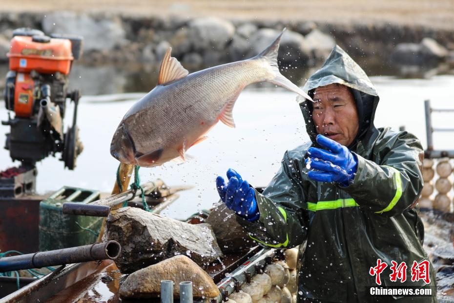 图为养殖户在进行冬捕作业。何五昌 摄