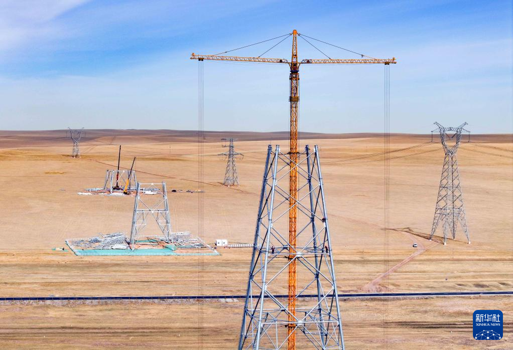 眼下,张北—胜利1000千伏特高压输电交流项目工程内蒙古段组塔工作进入高峰阶段,施工人员抢抓工期,力争早日完成组塔任务。