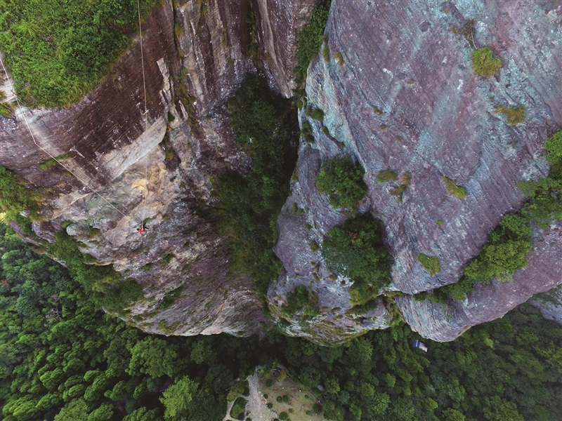 万成根与他的飞渡部落:百米高空走钢丝 穿行雁荡奇峰间