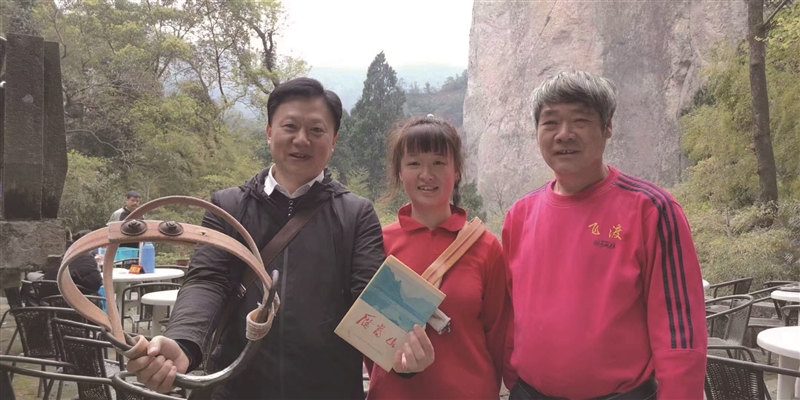 “你看到天柱峰崖壁上‘天柱’二字了吗?这是1916年乐清当地乡绅蒋叔南出钱请仇家的飞渡人刻上去的,后来蒋叔南还将此事记入了《雁荡山一览》。此后,灵岩飞渡也算打响了牌子。”万成根说道。