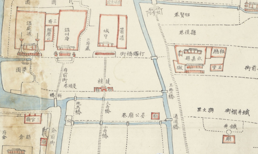 1877年温州城区图(局部)中晏公殿巷和通道桥