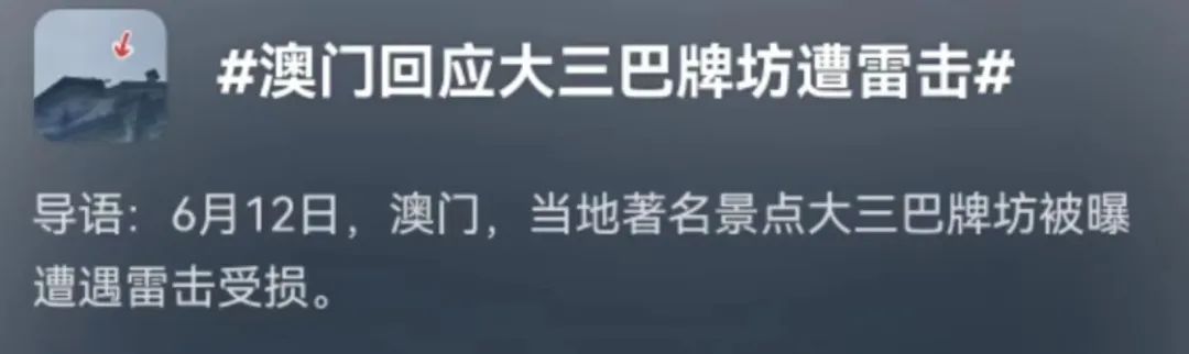 原标题:澳门大三巴遭雷击,顶部出现缺口?回应来了