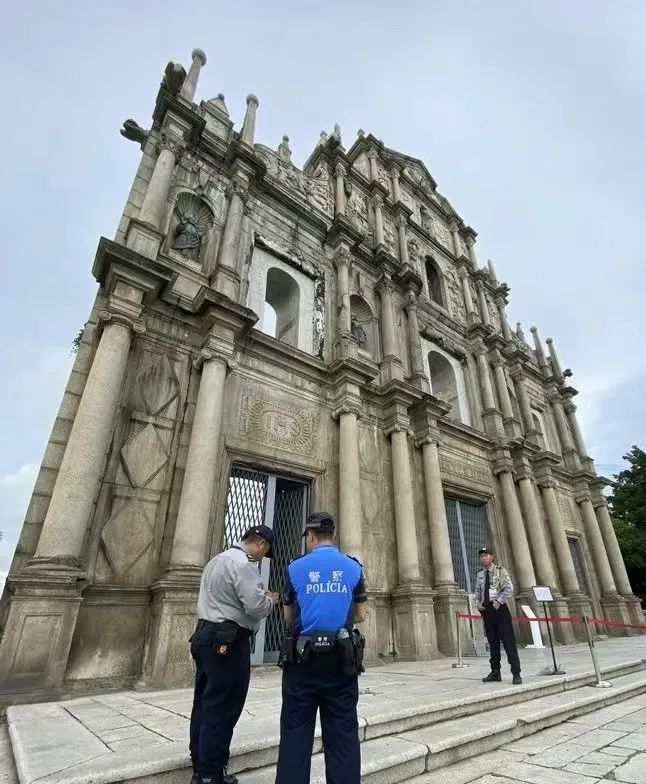 大三巴牌坊昨疑落石,旅游警察向保安了解事件