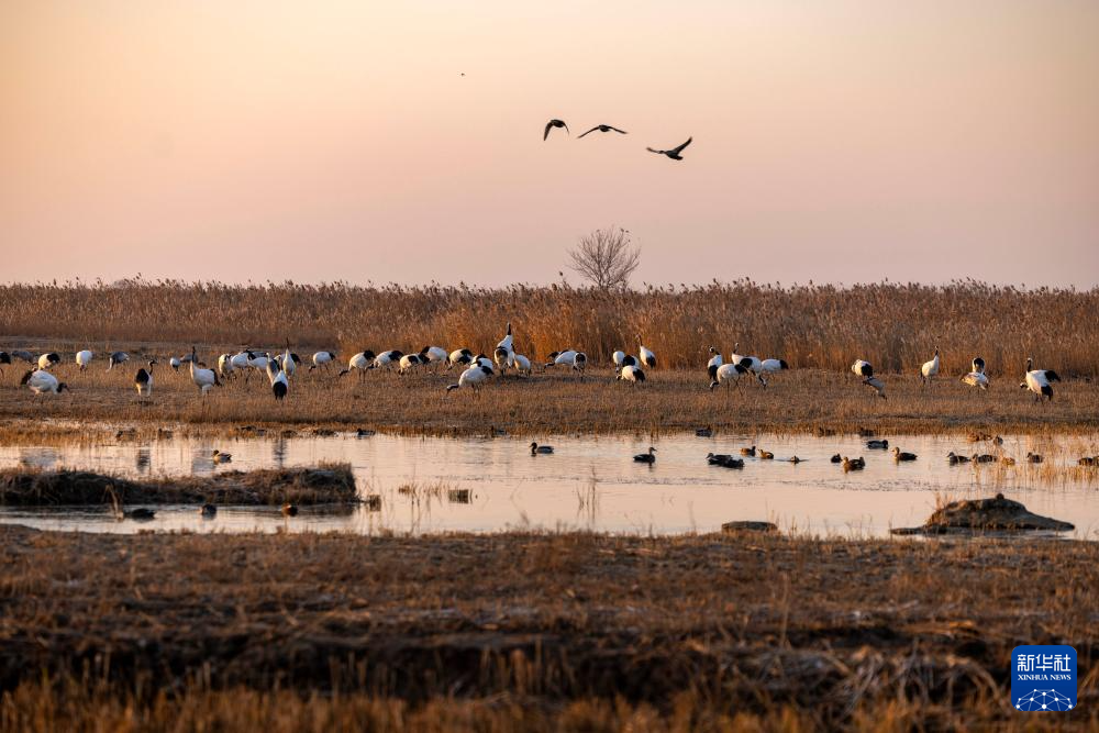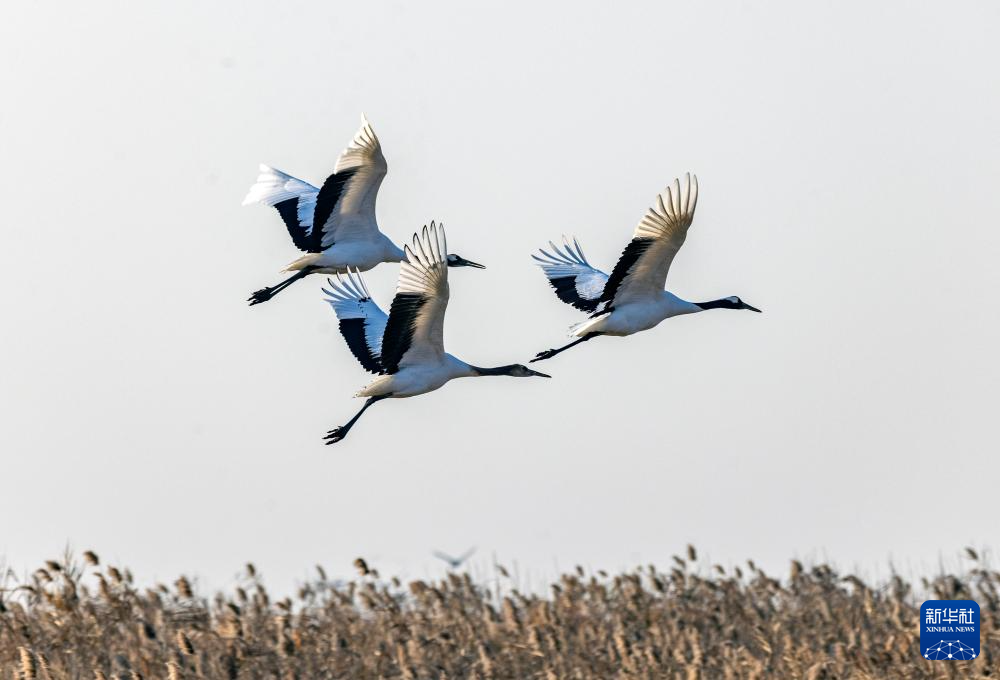 大批丹顶鹤飞抵盐城越冬