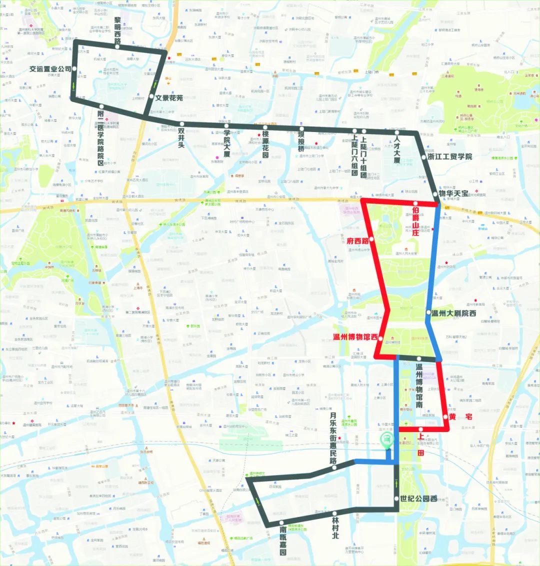新增站点:温州博物馆西、府西路、伯爵山庄、黄宅、上田