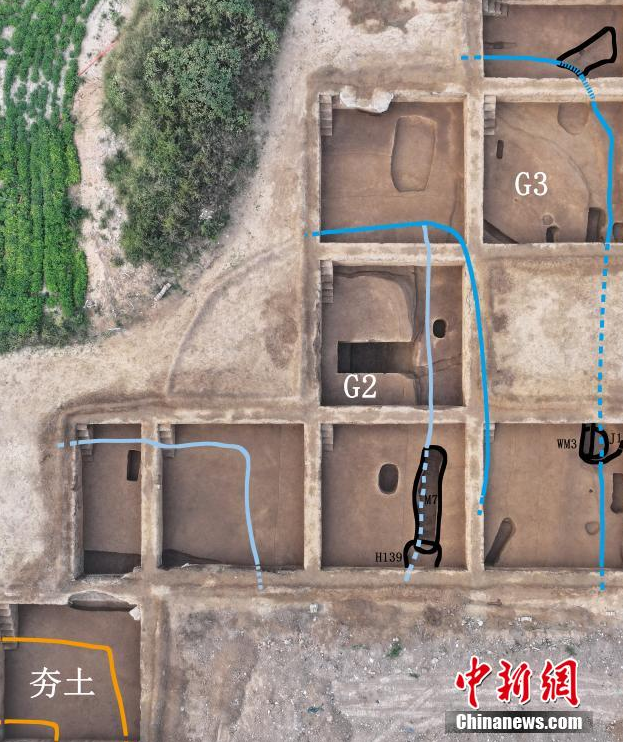 12月26日,中国国家文物局在北京举行“考古中国”重大项目重要进展工作会,通报河南省洛阳市二里头遗址等4项最新考古成果。其中,考古人员在洛阳古城村遗址发现二里头文化壕沟和夯土墙,推测它们极可能是二里头都邑外围的壕沟和城墙。此外,通报称,还发现二里头都邑迄今所知最宽的排房建筑,并首次揭露出十字路口区域四座分区围墙并立的布局。学术界普遍认为,二里头遗址是夏代晚期的都城遗址。图为洛阳古城村遗址夯土墙东北角(无人机图片)。洛阳市考古研究院 供图