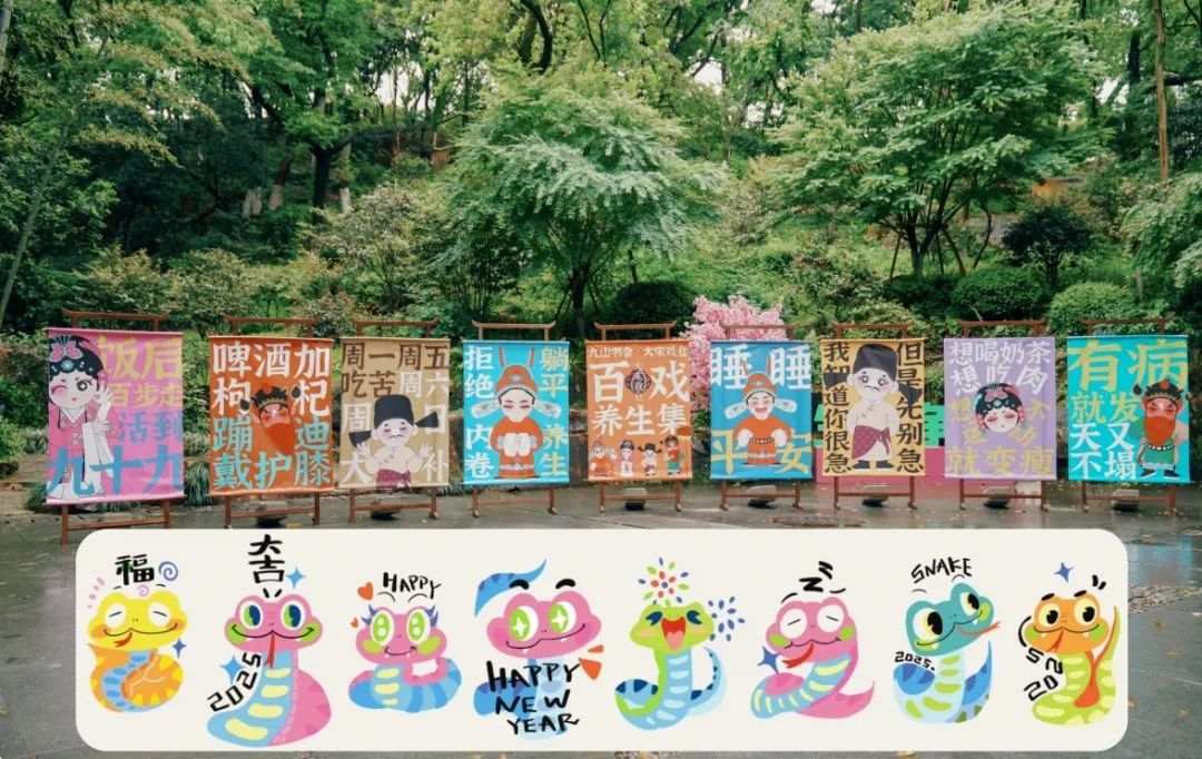 在这里,画板上绘着各式各样的“戏曲小蛇”