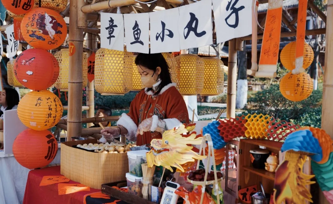 摊主的叫卖、顾客的笑声、戏曲的旋律